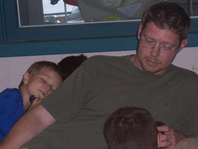 At one point while we were there, all the small animals decided to gang up on my brother. And yes, I do include my sons in that description. (Ross has Brownie and Simon hugging him, and Ethan’s probably regalling him with video game information. Or asking if he can turn on the XBox.)