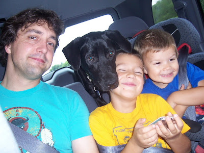 Aren’t my guys just the cutest, cuddliest boys you’ve ever seen? Connor didn’t really want to ride in the back, and at one point climbed over the seat and sat on Ethan’s lap. Such a cute dog.